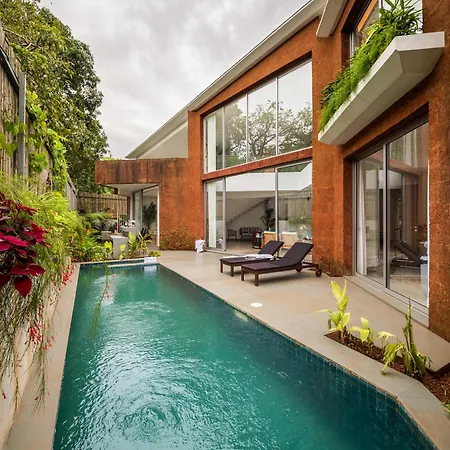 Ein herrlicher Blick auf den Garten ist in der Villa garantiert. Die La Orilla, Luxury 3 & 4 Bhk Villa Near Anjuna Beach With Private Pool, Kitchen, Security, Generator Backup verfügt über ein Badezimmer mit einer getrennten Toilette und einer Dusche. Zur Ausstattung des Badezimmers gehören ein Haartrockner, kostenlose Toilettenartikel und Badelaken.